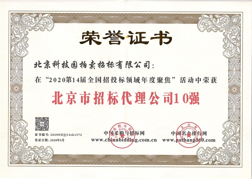 2020第14屆全國招投標(biāo)領(lǐng)域年度聚焦“北京市招標(biāo)代理公司10強(qiáng)