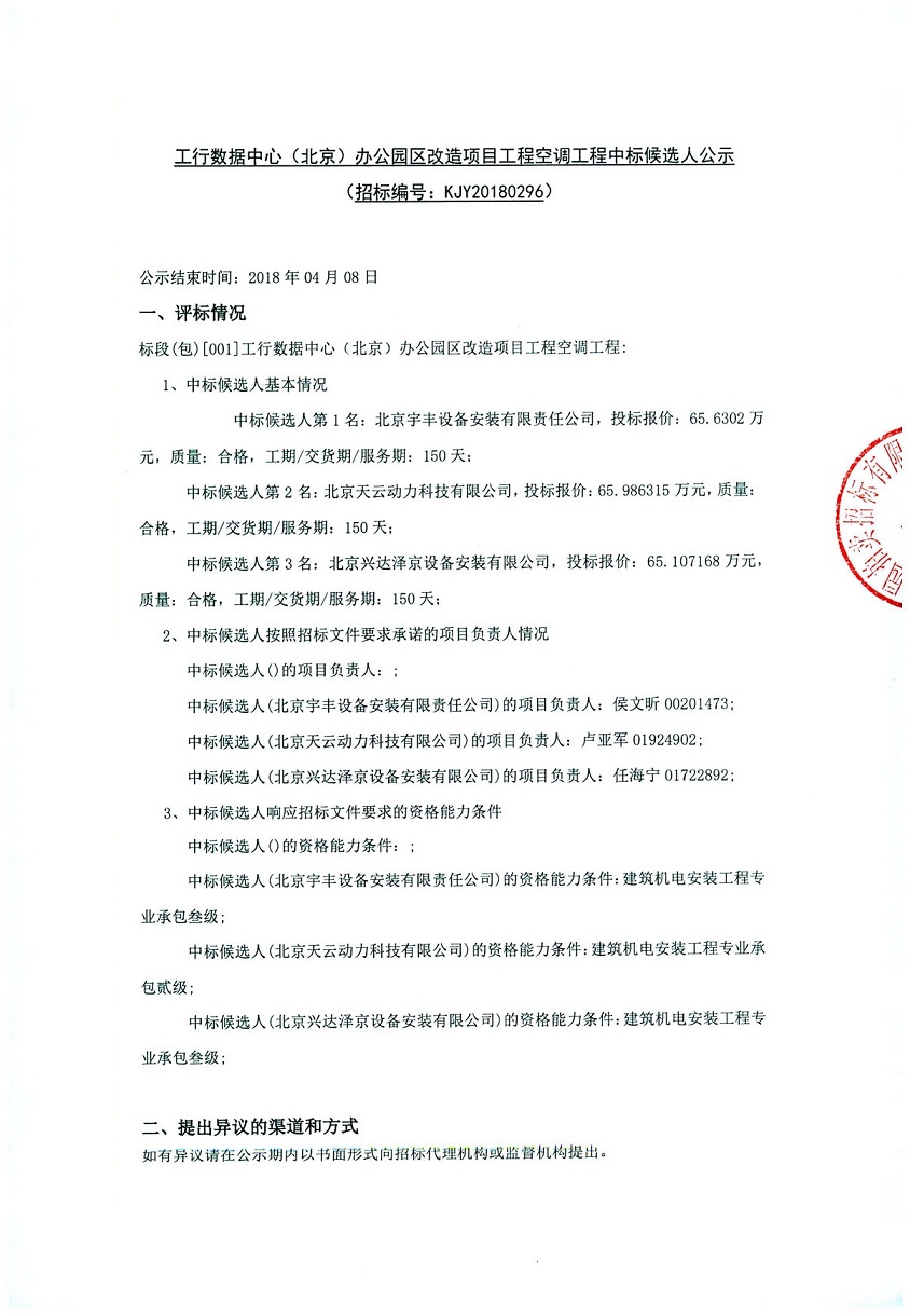 工行數(shù)據(jù)中心(北京)辦公園區(qū)改造項(xiàng)目工程空調(diào)工程中標(biāo)候選人公示