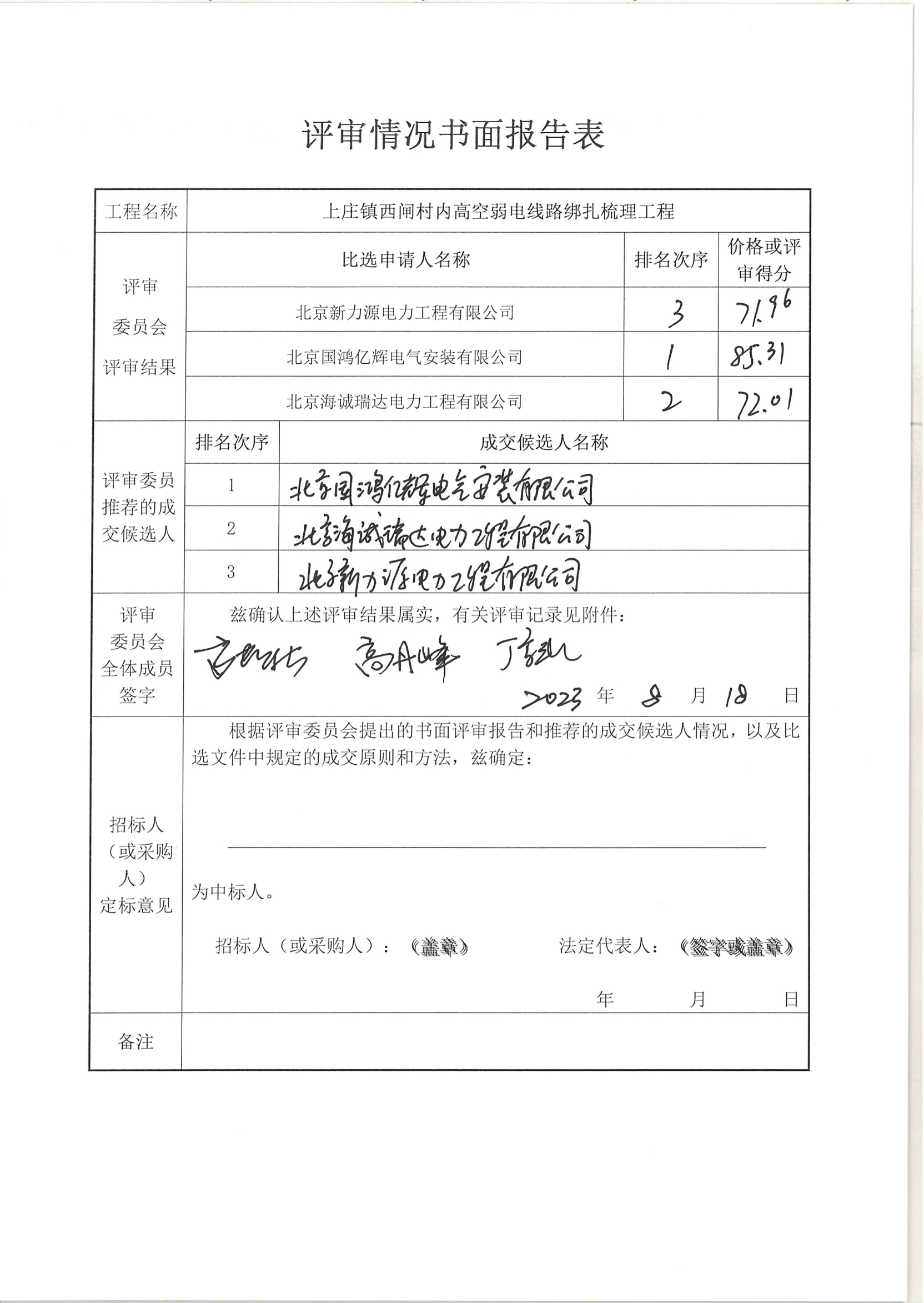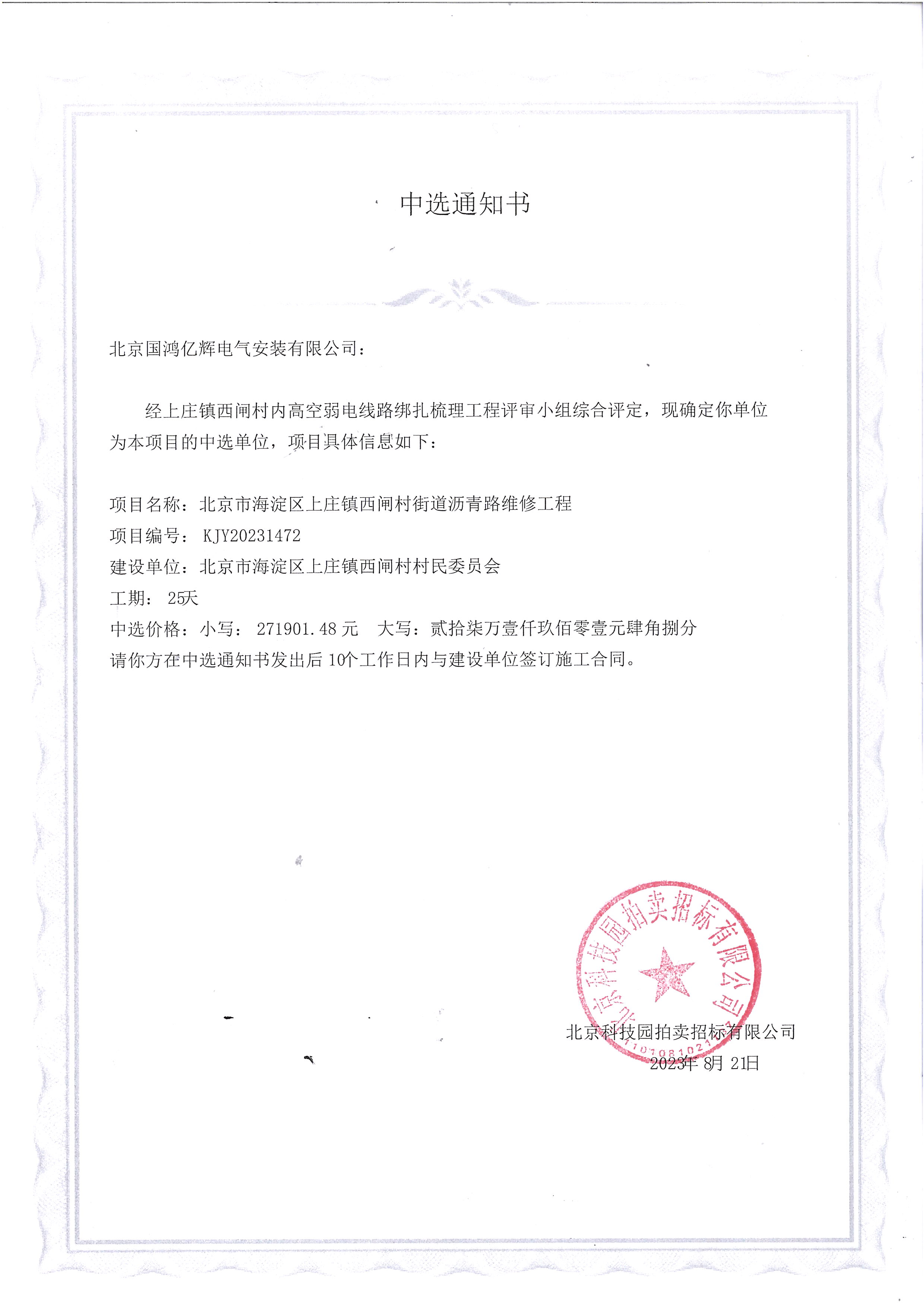 中選單位:北京國鴻億輝電氣安裝有限公司