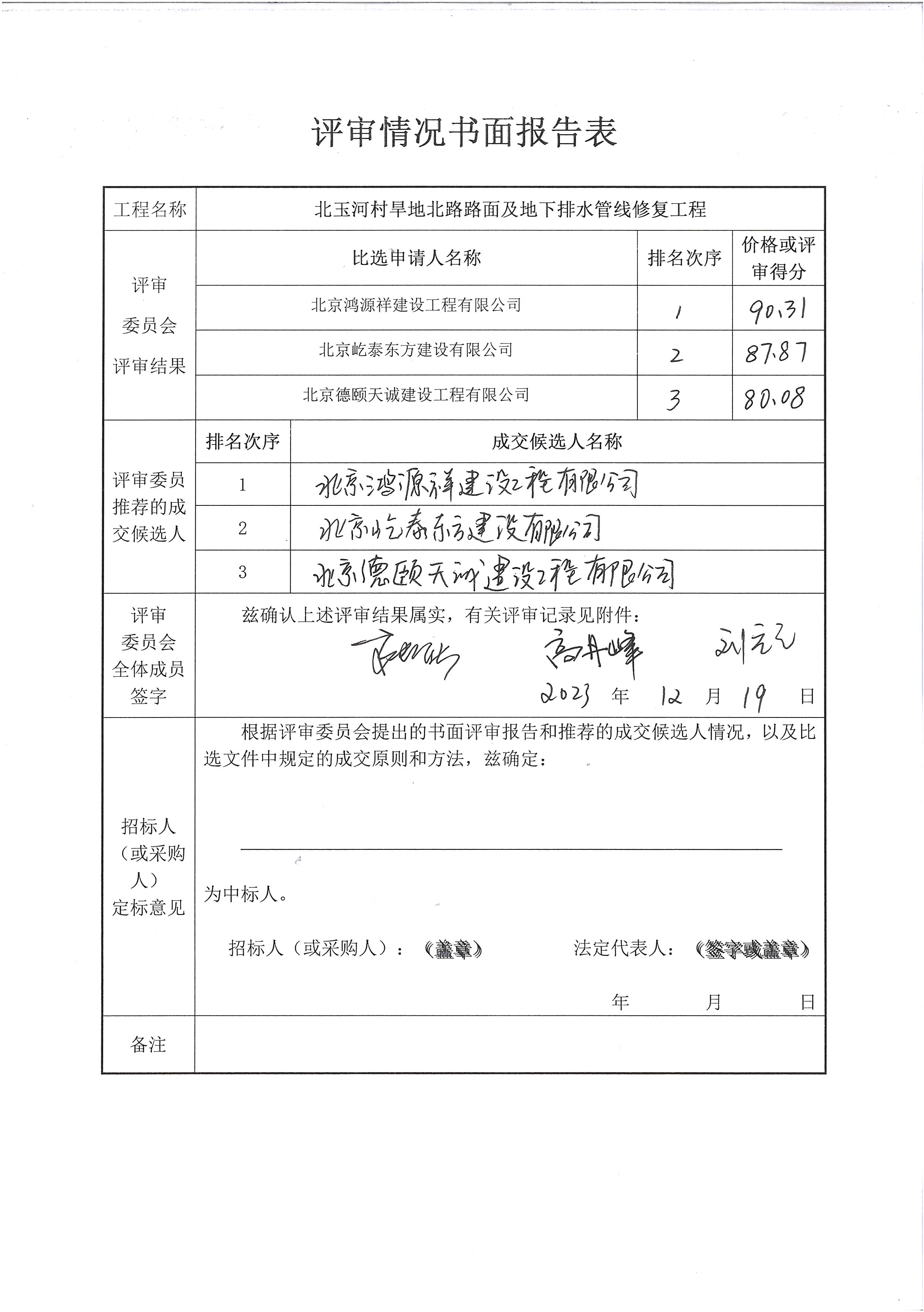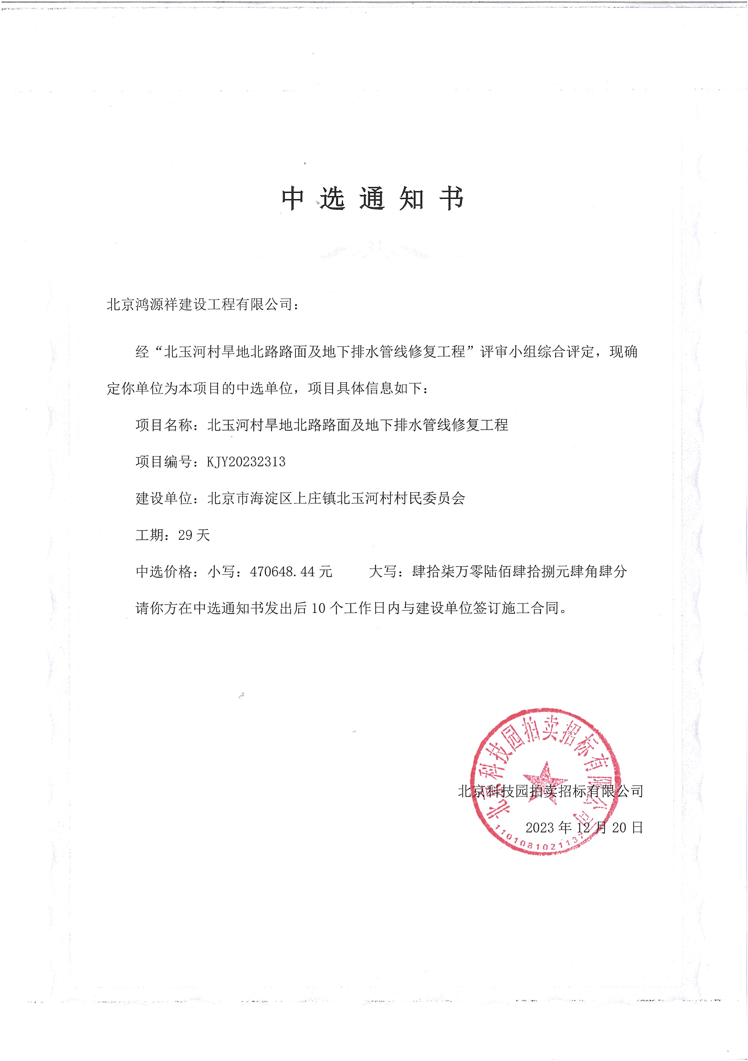 中選單位:北京鴻源祥建設(shè)工程有限公司