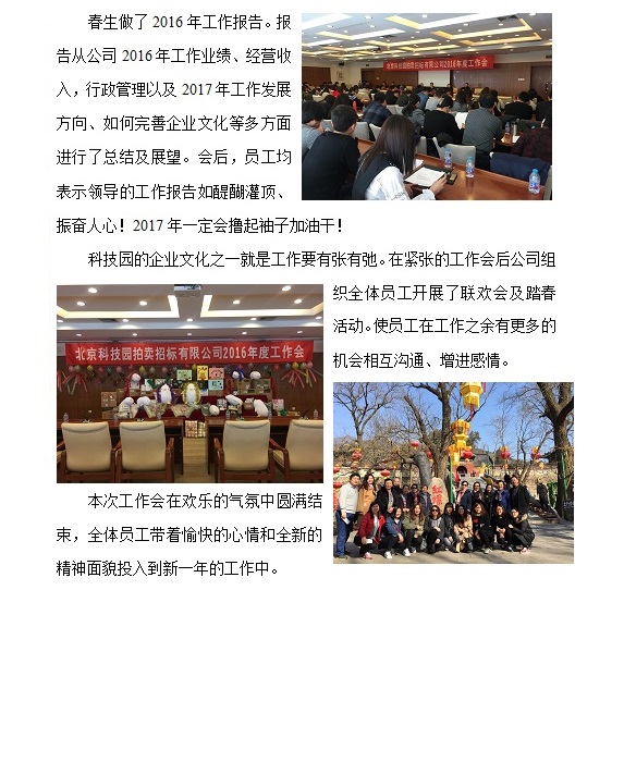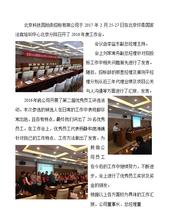 北京科技園拍賣(mài)招標(biāo)有限公司2016年度工作會(huì)簡(jiǎn)報(bào)