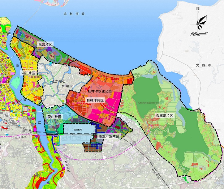 江東新區(qū)位于??跂|海岸區(qū)域,東起東寨港(??谛姓吔纾髦聊隙山?,北臨東海岸線,南至繞城高速二期和212省道,總用地面積約298平方公里,分為東部生態(tài)功能區(qū)和西部產(chǎn)城融合區(qū)。其中東部生態(tài)功能區(qū)約106平方公里,包含33平方公里的國(guó)際重要濕地東寨港國(guó)家級(jí)自然保護(hù)區(qū);西部產(chǎn)城融合區(qū)約192平方公里,包含沿江生活片區(qū)、桂林洋高校片區(qū)及臨空產(chǎn)業(yè)園片區(qū)等。
