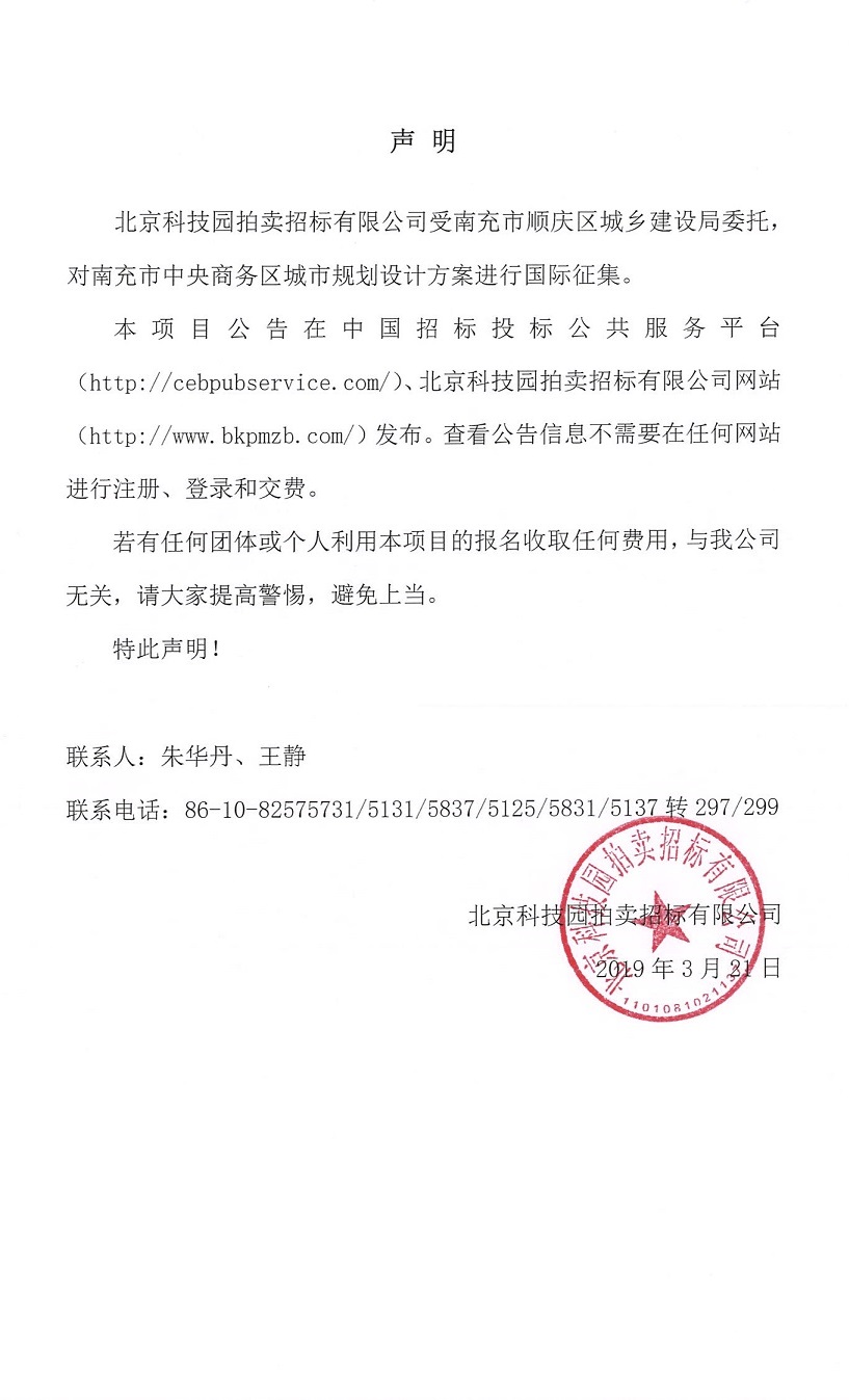 關于南充市中央商務區(qū)城市規(guī)劃設計方案國際征集的聲明