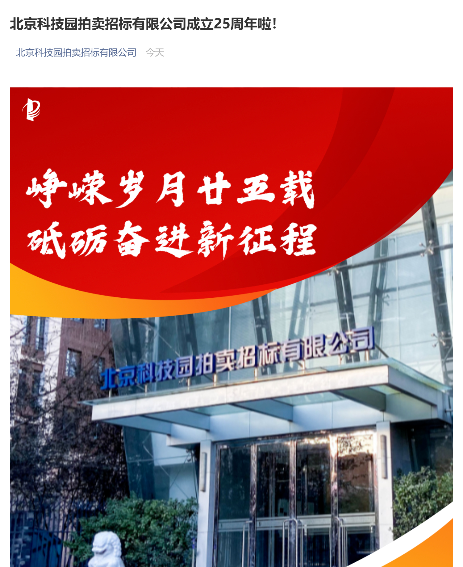 崢嶸歲月廿五載砥礪奮進新征程——熱烈慶祝北京科技園拍賣招標有限公司成立25周年